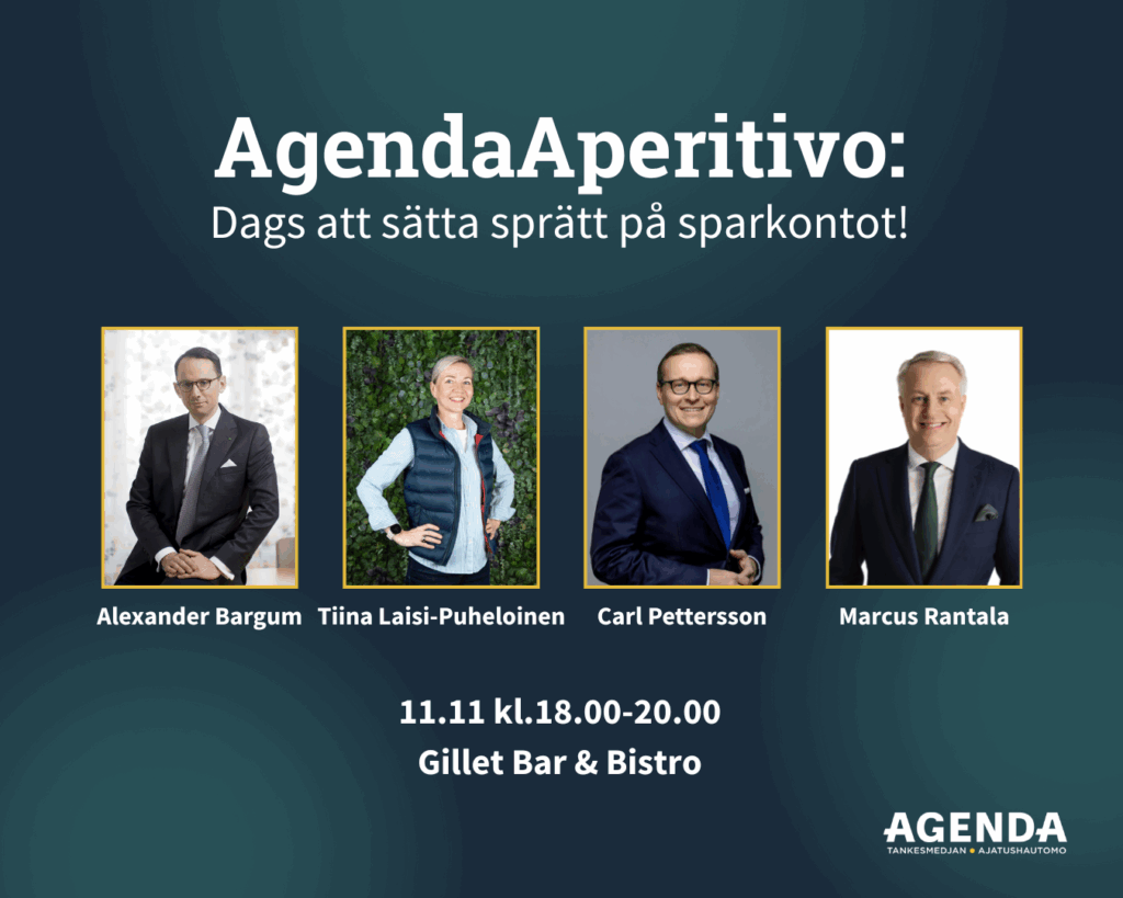 Välkommen på AgendaAperitivo: Dags att sätta sprätt på sparkontot – en paneldiskussion om hur vi ska få igång Finlands ekonomi